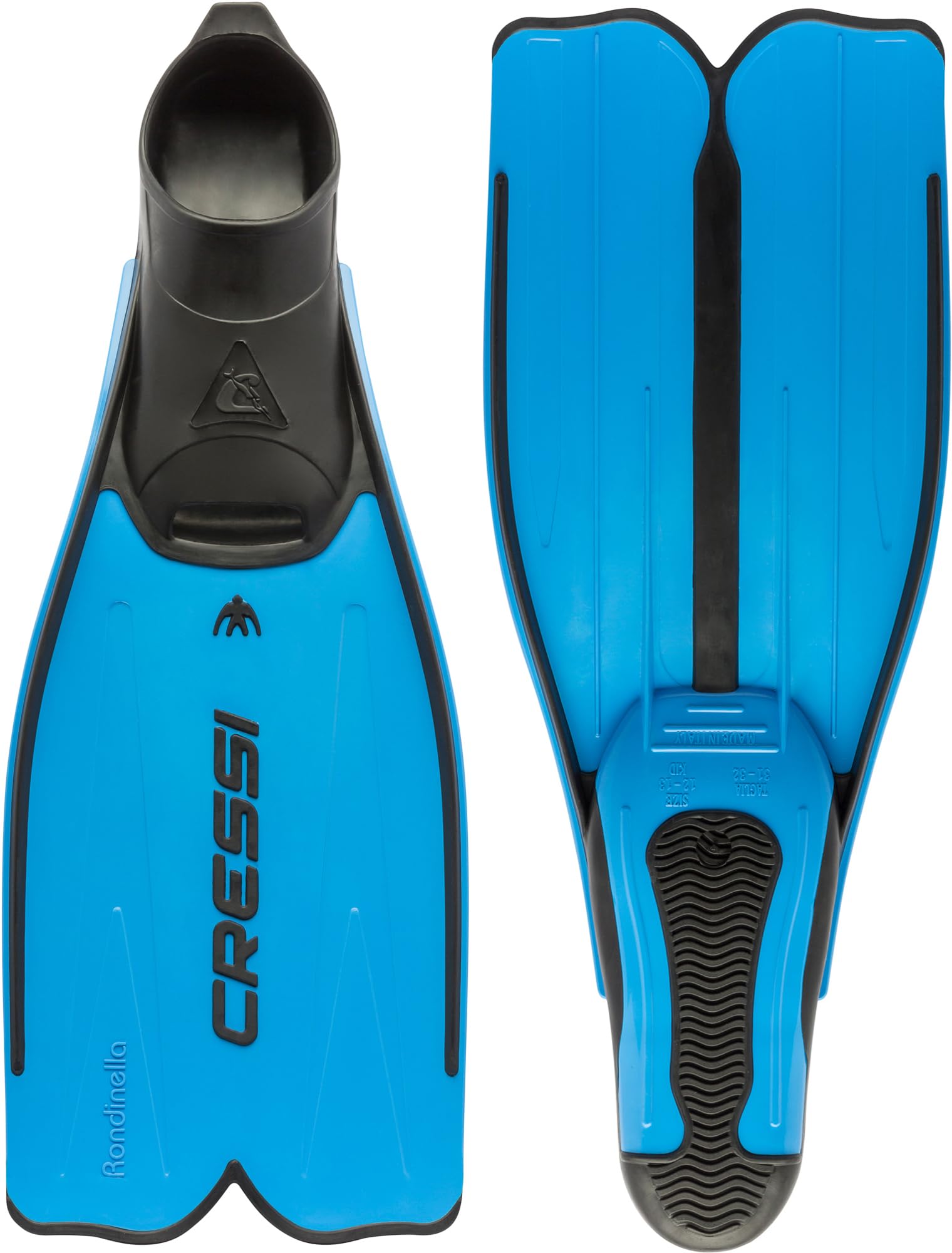 - In dieser idealen Flosse zum Schnorcheln, Schwimmen und für Apnoetauchgänge steckt die gesamte fünfzigjährige Erfahrung von Cressi, eine Weiterentwicklung der Grundprinzipien des berühmten Rondine-Modells aus blauem Gummi
