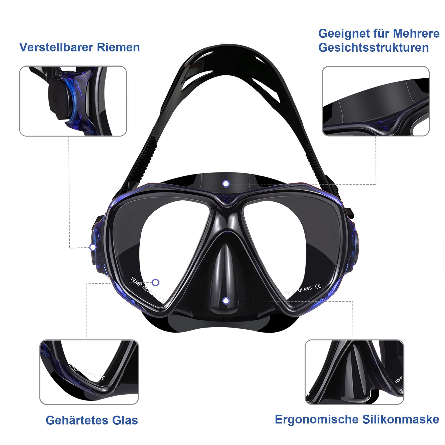 - ★Nebel- und wasserfest: Die Taucherbrille des Schnorchelset besteht aus gehärtetem Glas, das reibungs- und beschlagfest ist und ein klares Sichtfeld bietet. Das gehärtete Glas widerstandsfähig gegen ein Brechen und Wasserdruck ist, schützt es Ihre Augen vor allen Arten von harten oder scharfen Gegenständen. Die Linse ist mit einer Antibeschlagbeschichtung versehen, die kein Kunststoffmaterial ist.Bitte zerkratzen Sie die Linse nicht, um den Antibeschlageffekt nicht zu beeinträchtigen.