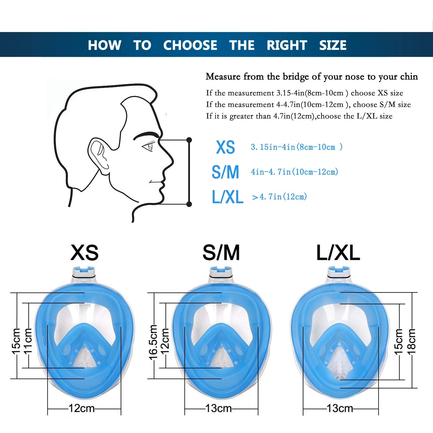 - Volles Gesicht -- Die tauchermaske nimmt Ihnen die unannehmlichkeiten, den Schnorchel in Ihrem Mund zu halten, und ermöglicht Ihnen, natürlich durch Ihre Nase und Ihren Mund unter Wasser zu atmen.