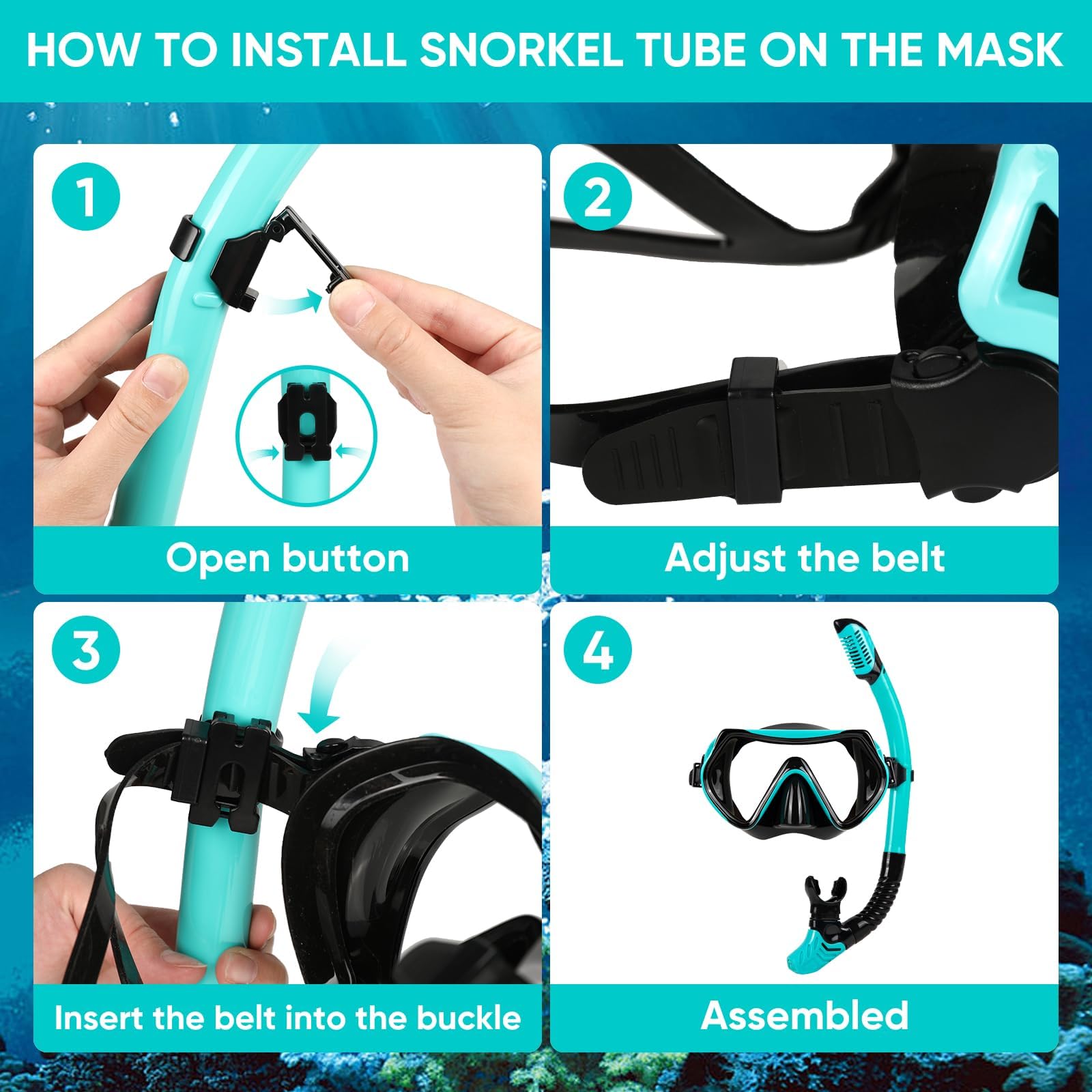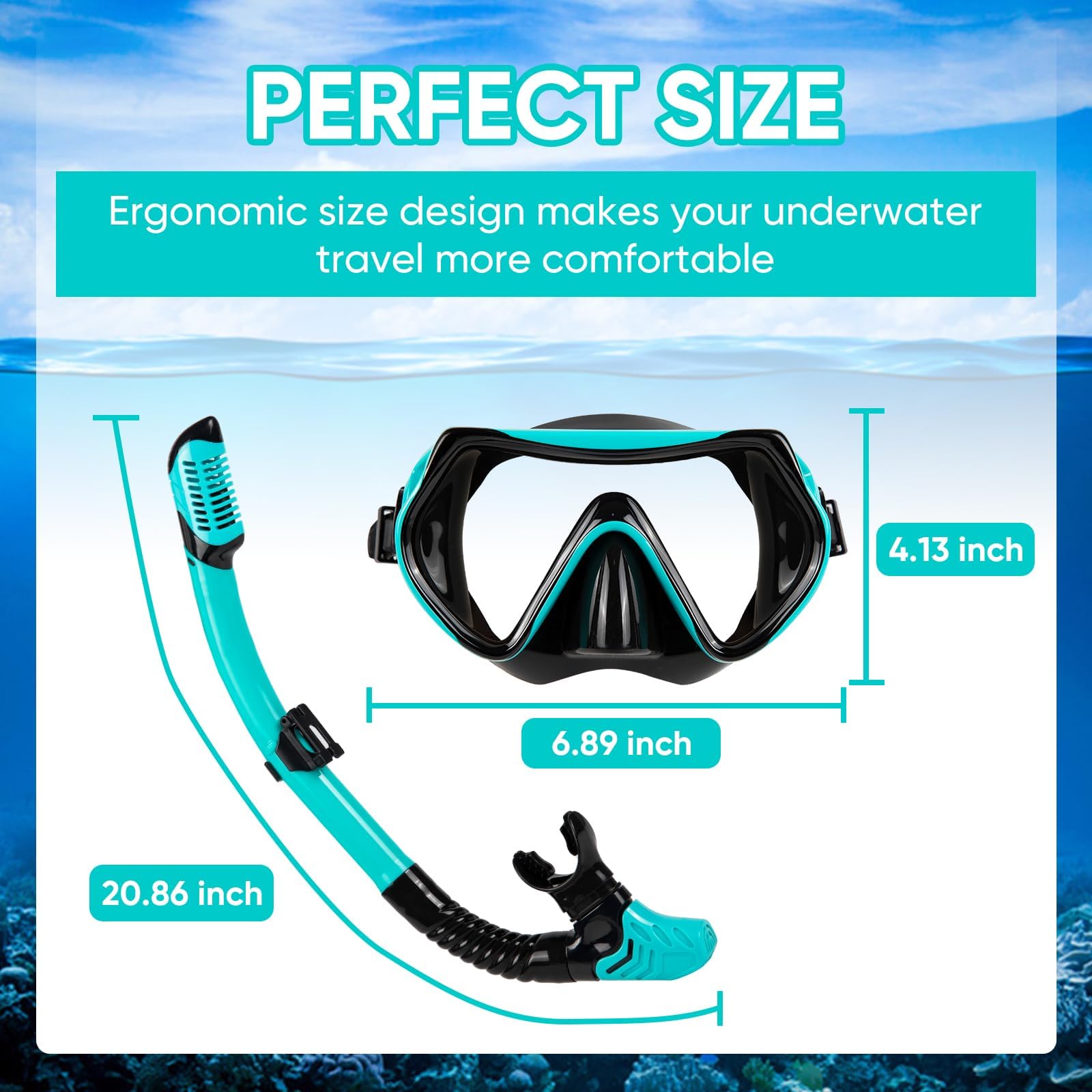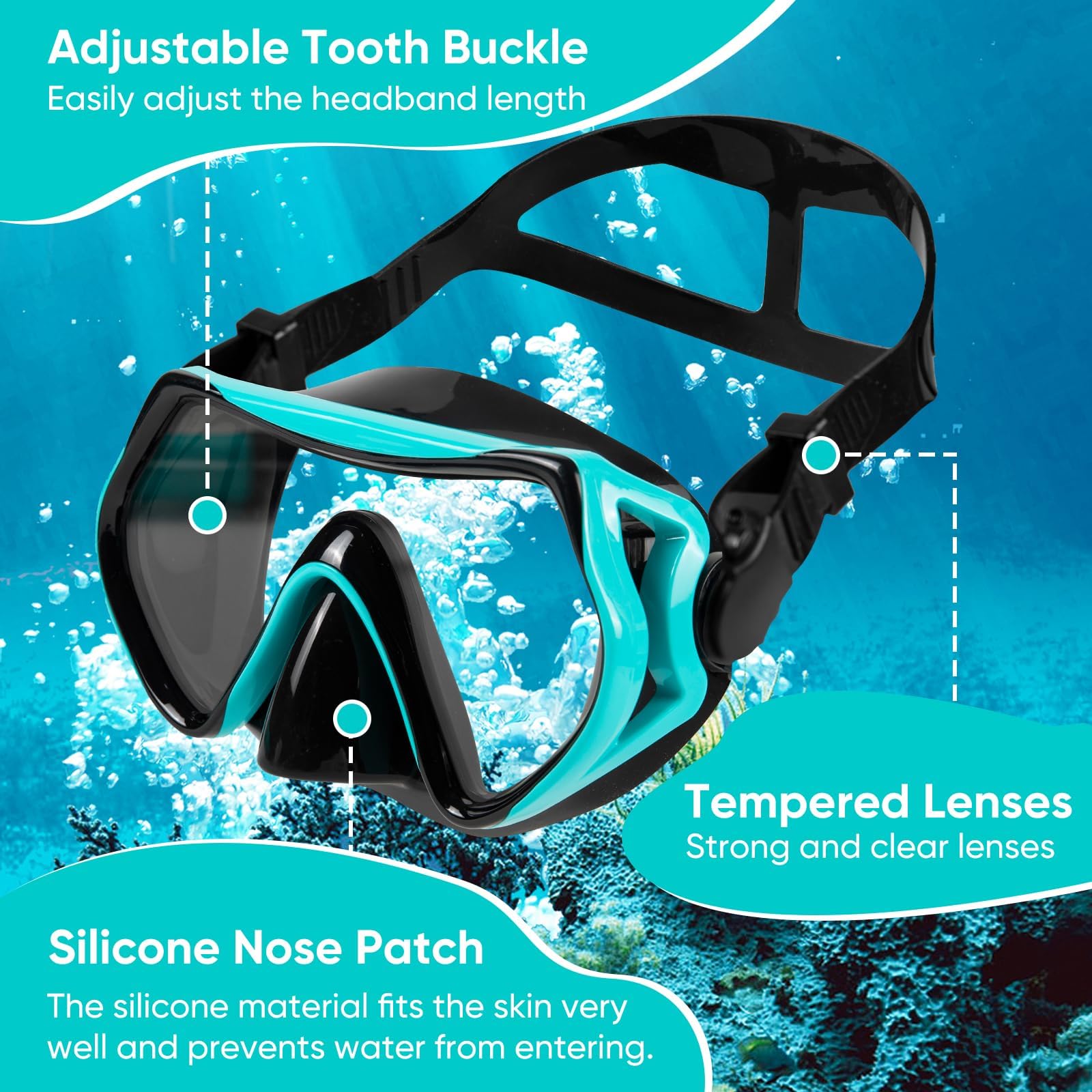 - GEHÄRTETES GLAS FÜR MEHR SICHERHEIT: Das gehärtete Sicherheitsglas der Schnorchelmaske ist stoßfest und kratzresistent. Es bietet klare Sicht und zuverlässigen Schutz beim Schnorcheln, Schwimmen oder Tauchen