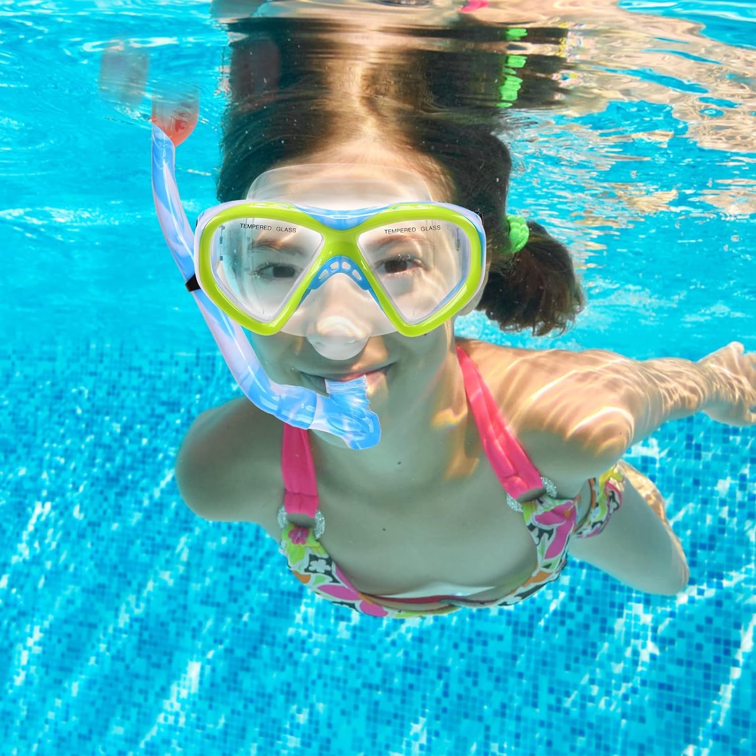 - 【180° Klarsicht】 Die Schnorchelset Kinder ist beschlagfrei und bietet eine 180° Vision, sodass Kinder mehr unter Wasser sehen und Steigern Sie ihr Interesse am Tauchen.