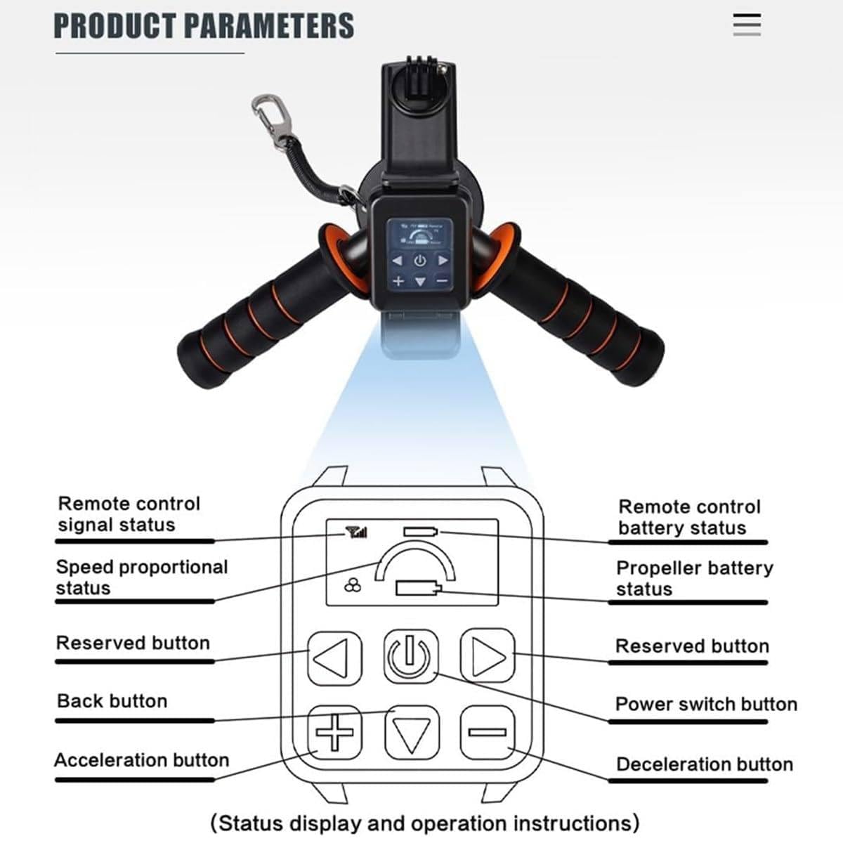 - ✌【MEHR SPASS】: Vom Schnorcheln über Paddle-Boarding bis hin zu Pool-Scootern. Der ist so einfach zu bedienen, dass auch Kinder am Spaß teilnehmen können. Das uhrenartige Design erleichtert das Manövrieren, während Sie die Fernbedienung auch bedienen können, indem Sie sie im wasserdichten Fach des Handgriffs montieren.